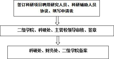 科研项目研究过程中,课题组认为需要聘请课题组以外成员的,项目负责人需要跟每位聘用人员签订聘用协议,连同聘用人员申请表(签字盖章后)报科研处、财务处备案。详见流程。